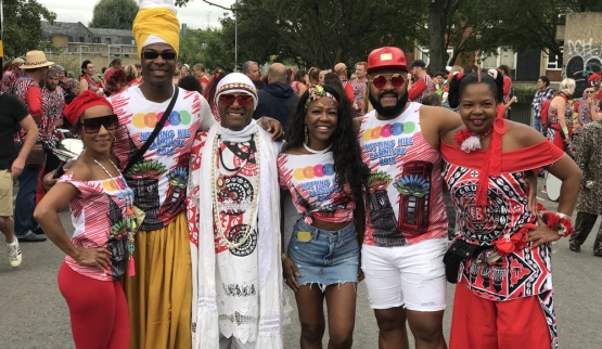 Ebano UK uniu-se ao grupo de percussão Batalá e o som vibrante de seus 150 integrantes para desfilar no Carnaval de Notting Hill.